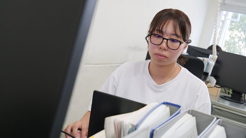 資格は努力の可視化であり、これからもいろいろな勉強を続けていきたいと話す宮腰さんを、卒業研究の様子も交えてご紹介します。